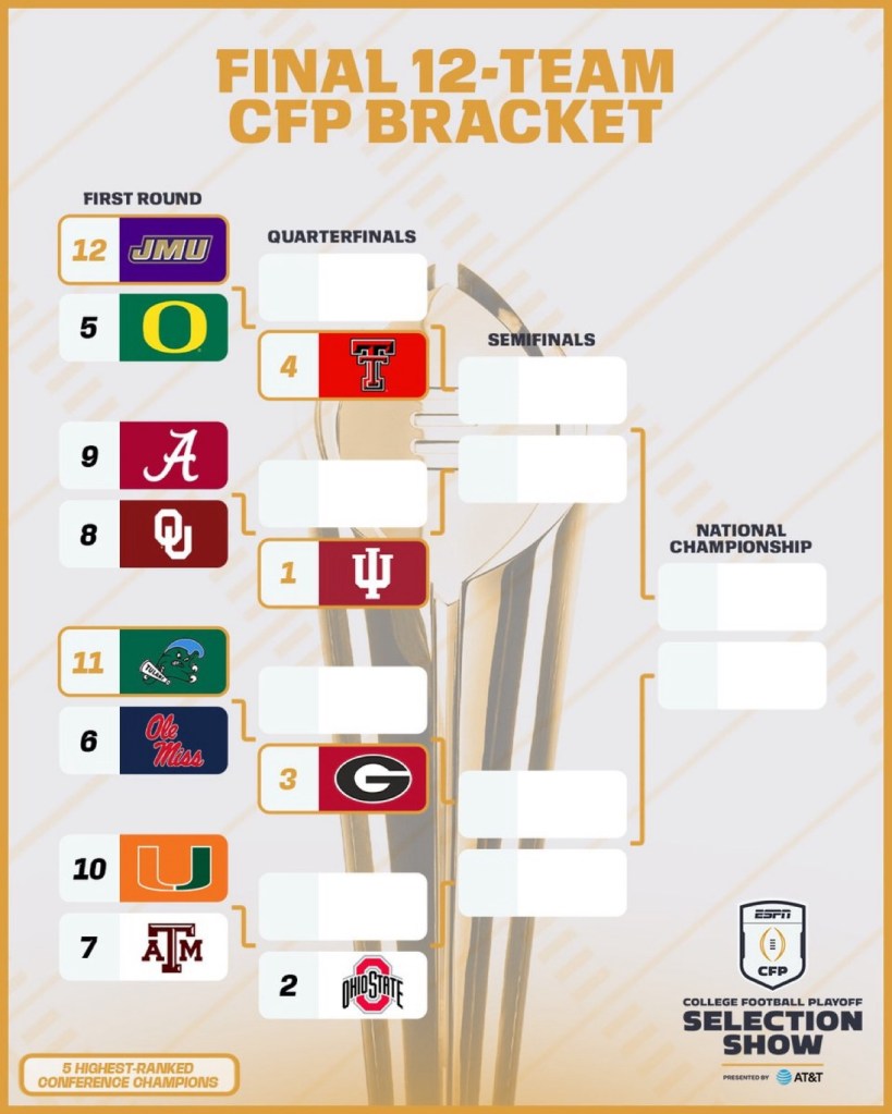 Ole Miss moves up to No.6 and will play Tulane in the 1st round.